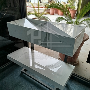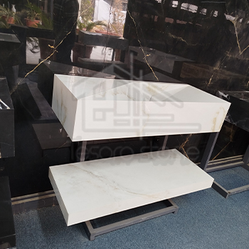 روشویی سرامیکی سفید طرح سنگ (مدل دو طبقه): مینیمال، لوکس و اقتصادی